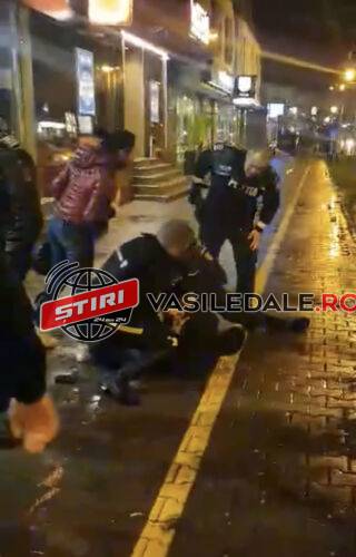În fața cazinoului scandalul a continuat. Mai multe echipaje ale firmei de pază, ale poliției si jandarmeriei au sosit la fața locului. Cum bărbatul a opus rezistență, polițiștii l-au trântit la pământ și l-au încătușat.