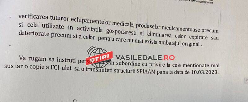 Printre echipamentele expirate se aflau și laringoscoape sau sonde de dren „găsite și puse în zone care nu mai intră în circuitul spitalului, respectiv ele sunt depozitate și urmează a fi transportate de acolo de către firmele autorizate în acest sens”, mai spune managerul unității medicale.