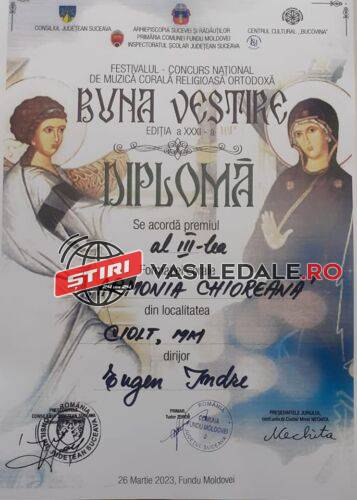 Felicitări corului „Armonia Chioreană” pentru prestația avută și premiul obținut!