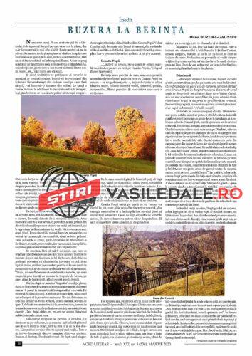Dana Buzura-Gagniuc propune o pagină de proză din volumul în pregătire, ”Buzura la Berința”, care va aduce în atenția publicului elemente inedite din viața scriitorului Augustin Buzura, prin valorificarea corespondenței sale cu părinții și prin recuperarea unor povești mai puțin cunoscute publicului.