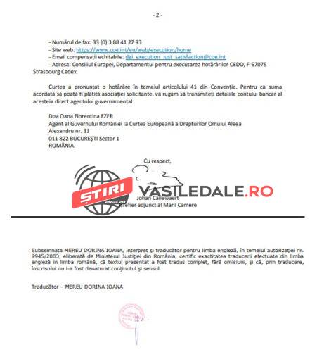 • Adresa: Consiliul Europei, Departamentul pentru executarea hotărârilor CEDO, F-67075
