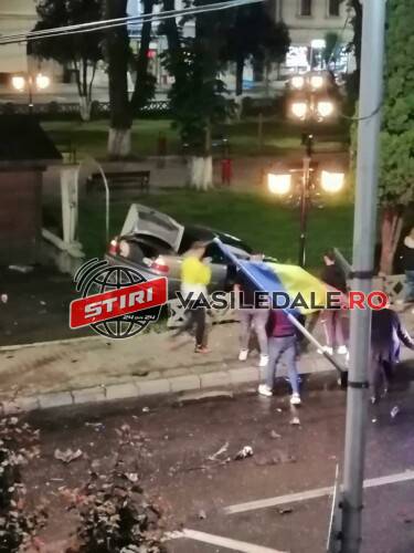 Impactul nu a mai putut fi evitat. Astfel mașina parcată a fost distrusă și proiectată pe trotuar, iar cealaltă mașină a fost aruncată în stânga direcției de mers printr-un gard din beton într-un părculeț.