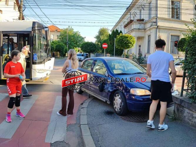 Șoferul Urbis a frânat însă nu a mai putut evita impactul lovind autoturismul în lateral. În urma loviturii mașina a ajuns pe trotuar oprindu-se într-un gard.