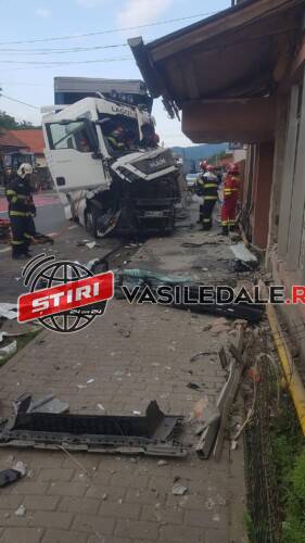 Din primele informații, șoferul unui autocamion a pierdut controlul asupra direcției de deplasare și a intrat în coliziune cu un imobil.