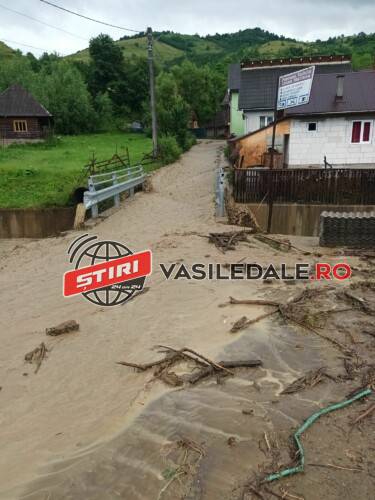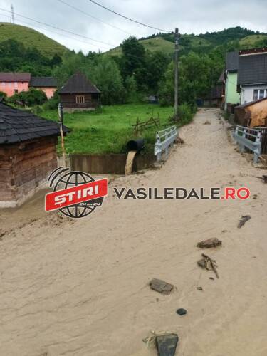 Scurgeri de pe versanti la Borza. O vale a colmatat două podețe de si s-a revărsat pe drum.
