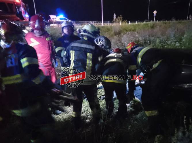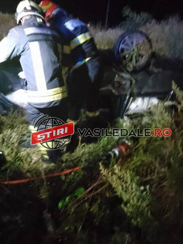 La fața locului, echipajele operative au constatat faptul că un autoturism în care se aflau două persoane, a ieșit în afara părții carosabile și s-a răsturnat pe plafon.