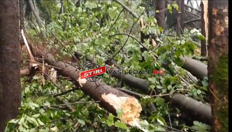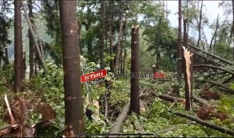 Imagini apocaliptice în Firiza, Maramureș. Vijelia abătută asupra cartierului băimărean a lăsat în urmă prăpăd. Oamenii spun că a fost tornadă. O pădure de fag a fost pur și simplu rasă de pe suprafața pământului. Bradul din curtea unui localnic a fost retezat de la jumătate și aruncat pe liniile de furnizare a energiei electrice. Furnizarea curentului a fost oprită în Firiza și Blidari.
