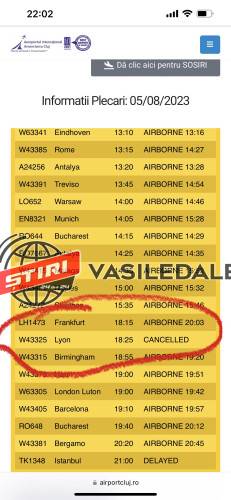 Culmea că e în ziua în care secretar de stat în Ministerul Transporturilor, Bogdan Mândrescu făcea acest anunț, compania maghiară Wizz Air și-a mai bătut încă odată de pasagerii români. Astfel, zborul Cluj – Lyon (decolare la ora 18.25) și Lyon – Cluj (aterizare ora 0.10) A FOST ANULAT. Sute de pasageri au rămas cu ”ochii-n soare” atât pe Aeroportul Internațional Cluj cât și pe Aeroportul francez din Lyon.
