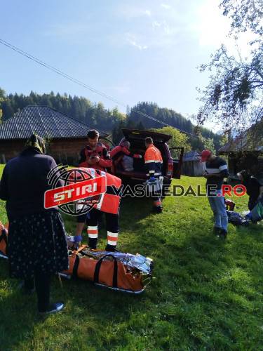 O nouă acțiune în derulare în zona greu accesibilă a localității Poienile de Sub Munte pentru acordarea primului ajutor, evacuarea și transportul unei persoane de sex masculin de 78 ani care a suferit un accident după ce a căzut dintr-un măr, iar aparținătorii au sunat la 112 anunțând accidentul.