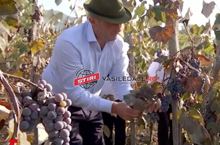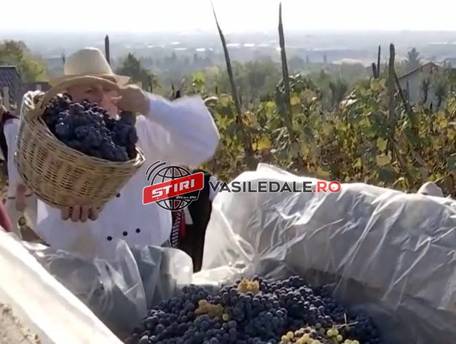 Podgoria a fost moștenită de la bunici, iar pentru a culege roadele de pe cei 800 de butași, sătenii au transformat activitatea de toamnă într-o adevărată zi de sărbătoare.