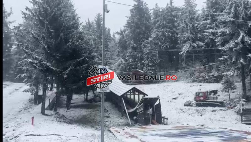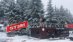 La Cavnic ninge în acest moment în zona pârtiilor de schi. Zapada depusă măsoara 1-2 cm. Șoseaua care traversează muntele este umedă.
