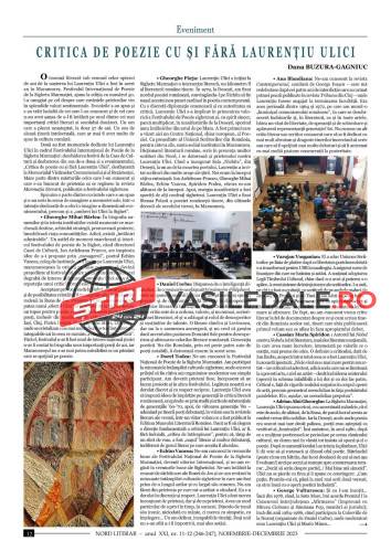 Dezbaterea din acest număr îl are în prim-plan pe criticul Laurențiu Ulici, care a fost omagiat la ediția-jubileu a Festivalului Internațional de Poezie de la Sighetu Marmației din acest an. Nume importante ale literaturii române evocă personalitatea acestuia, în dezbaterea semnată de Dana Buzura-Gagniuc.