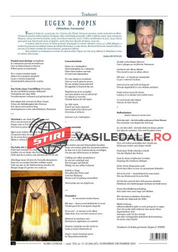 Pagina de traduceri cuprinde poezii din creația poetului Eugen D. Popin traduse în limba germană de autor.