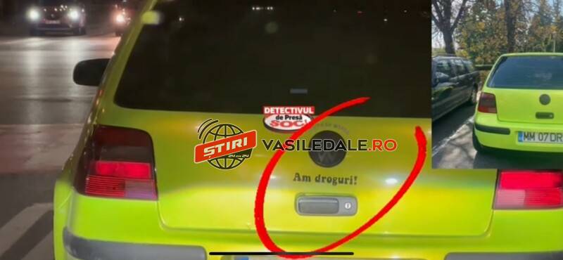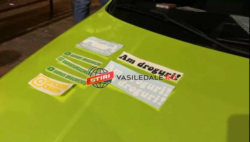Vizat este un livrator șmecheraș care și-a lipit pe autoturism mesajul ”Am droguri”!
