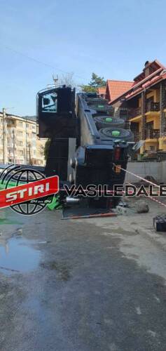Conform informațiilor transmise de cititorii noștri macaraua a fost adusă în zonă pentru că se efectuau lucrări la un imobil privat. Astăzi dimineață însă, cel mai probabil macaragiul nu ar fi asigurat utilajul așa cum scrie la carte, iar macaraua s-a răsturnat.