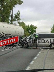 Din primele informaţii se pare că un microbuz care circula pe drumul prioritar nu a reuşit sa evite impactul cu o cisternă care ieșea din peco încălcând marcajul continuu.
