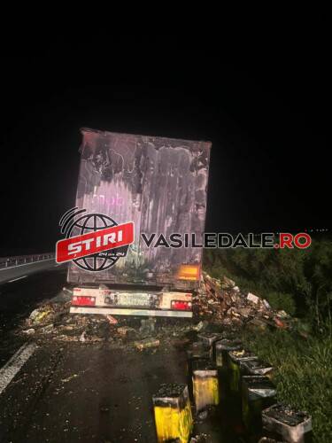 Avea în remorcă tuburi de spray-uri, ulei, alcool și produse alimentare, 20 de tone de marfă, în valoare de câteva zeci de mii de lei.