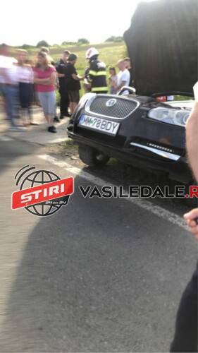 Impactul dintre cele două vehicule a fost violent iar una dintre mașini a fost proiectată în șanț.