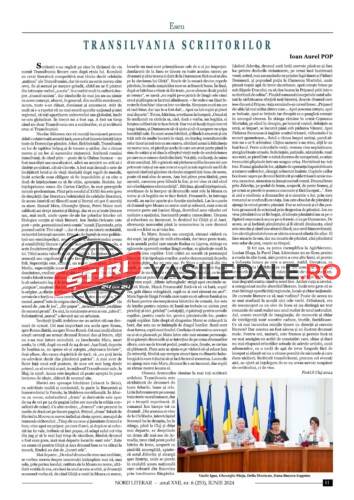 În acest număr, publicăm eseul „Transilvania scriitorilor” al președintelui Academiei Române, Ioan Aurel Pop, care a fost prezentat de universitarul clujean cu prilejul aniversării a 75 de ani de la înființarea Filialelor din Transilvania ale Uniunii Scriitorilor Cluj.