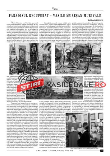Dalina Bădescu, la pagina dedicată artelor ne prezintă „Paradisul recuperat” al lui Vasile Mureșan Murivale, „una dintre marile enigme ale artei românești contemporane”.