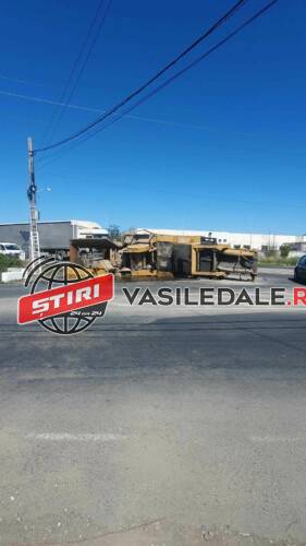 FOTO / GRAV INCIDENT ÎN BAIA MARE: Un concasor a căzut de pe platforma unui TIR