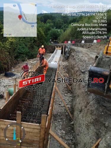 Pe acest tronson au fost finalizate deja 60% dintre lucrările prevăzute, iar acum se intervine pentru canalizarea pluvială, respectiv la realizarea stratului de balast de fundație inferior. Săptămâna viitoare se va așterne stratul de agregate naturale stabilizate cu ciment și vor fi amenajate trotuarele. De asemenea, se consolidează podul de la km 0+508, unde se lucrează la armarea și cofrarea plăcii de suprabetonare din beton C35/45. Proiectul acoperă 5,8 km de drum, finanțat prin programul MaraNord, cu un buget total de 120 milioane euro pentru opt drumuri județene. Finalizarea lucrărilor este programată pentru luna octombrie.