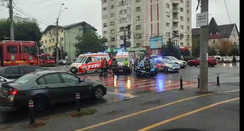 Un accident rutier s-a produs cu puțin timp în urmă la intersectia bd Bucuresti cu bd. Republicii din Baia Mare. Sunt implicate trei autoturisme. Intervin 2 echipaje ale ambulantei, un echipaj pompieri si unul al poliției rutiere.