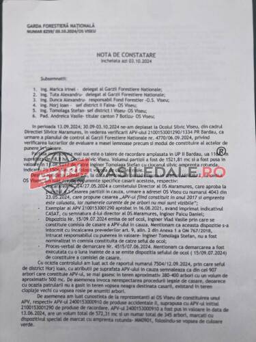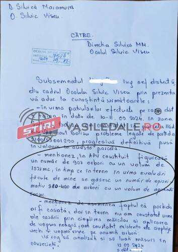 Vă prezentăm documentele și vă lăsăm pe dvs să trageți concluziile noi le-am tras de mult deja. În 12 septembrie 2024, către DS Maramureș respectiv OS Vișeu de Sus ajunge să fie înregistrat un raport al inginerului silvic de la OS Vișeu de Sus (așadar cu o zi înainte de controlul ANUNȚAT al comisarilor Gărzii Forestiere).