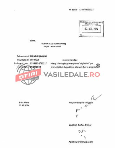 Sentința a rămas definitivă pentru că Ocolul Silvic Maramureș nu a atacat-o la instanța superioară.