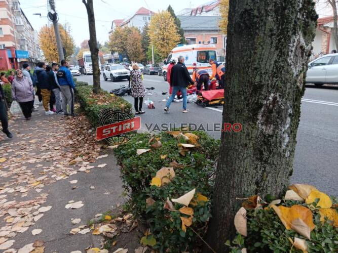Accidentul s-a produs pe strada Victoriei, din municipiu, iar din verificări a rezultat faptul că pe fondul neasigurării la efectuarea unui viraj, un autoturism a acroșat o motocicletă.