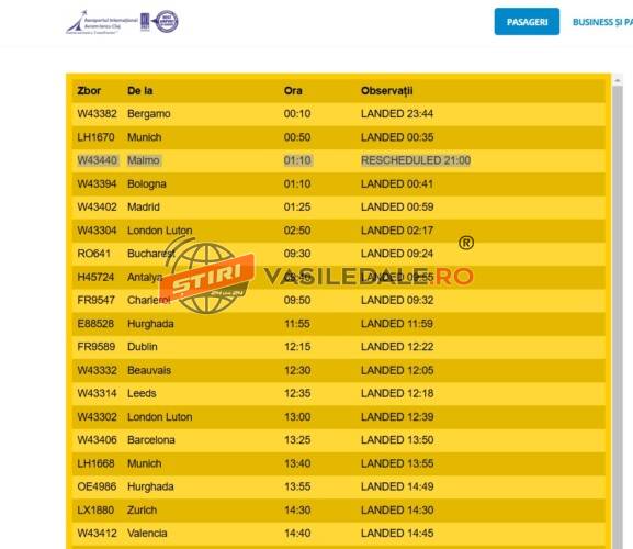 În urmă cu puțin timp pe ecranele aeroportului din Malmo s-a anunțat amânarea zborului spre Cluj Napoca de la 18.00 la ora 21.35. Așadar aterizarea la Cluj Napoca ar fi programată la ora 0.30. Deocamdată site-ul aeroportului nu a modificat informațiile.