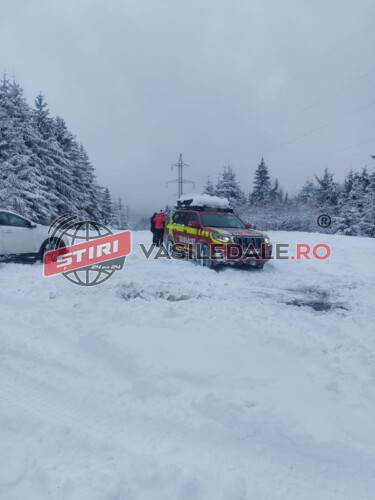Acțiune în derulare a SPJ Salvamont Maramureș în pasul Rotunda, pentru recuperarea unei familii cu doi copii care a rămas împotmolită cu mașina în zăpadă nemaiputându-se deplasa.