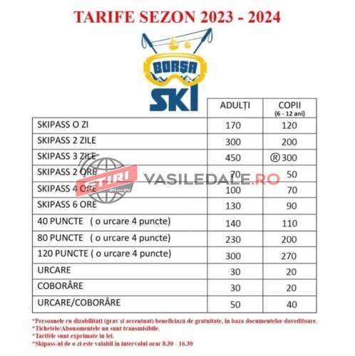 skipass 4 ore – 100 lei adulți / 70 lei copii (6-12 ani)