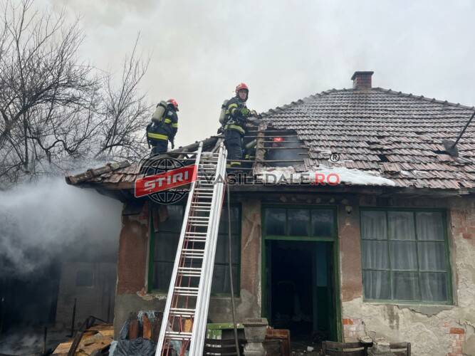 În aceste momente pompierii intervin pentru lichidarea incendiului și limitarea propagării flăcărilor la clădirea învecinată.