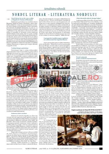 A apărut numărul dublu, pe noiembrie-decembrie, al revistei de cultură „Nord Literar”, cu același cuprins bogat și variat ca de fiecare dată.