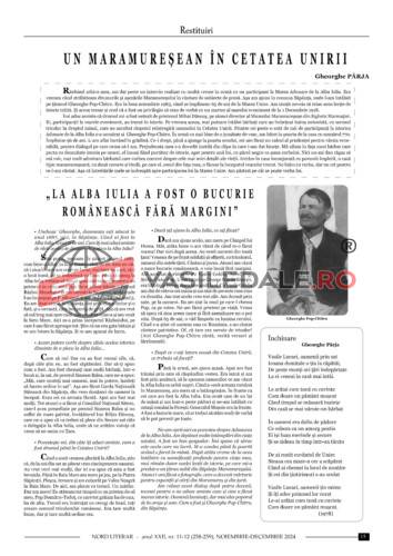 Gheorghe Pârja oferă cititorilor două pagini de restituiri emoționante. Astfel, continuă seria dedicată scriitorilor din Cernăuți cu portretul cărturarului Ștefan Hoștiuc și conturează atmosfera din anul Unirii, prin readucerea în actualitate a unui interviu cu Gheorghe Pop-Chitru, unul dintre maramureșenii care au fost atunci la Alba Iulia.
