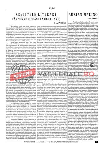 Ion Papuc aduce în atenție personalitatea lui Adrian Marino, eminentul istoric literar și fost deținut politic.