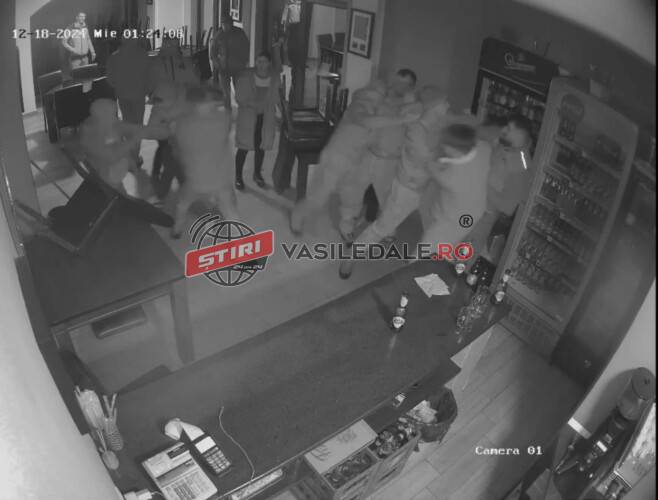Conform imaginilor surprinse de o cameră de supraveghere în bar erau mai mulți tineri iar scandalul a izbucnit ieri noapte în jurul orei de 1.24.