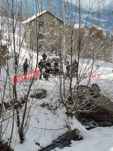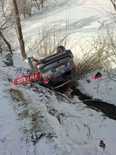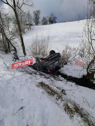 Un bărbat care încerca să ajungă la drumul național pe strada necurățată, a pierdut controlul volanului și s-a răsturnat într-un pârâu, pe plafon.