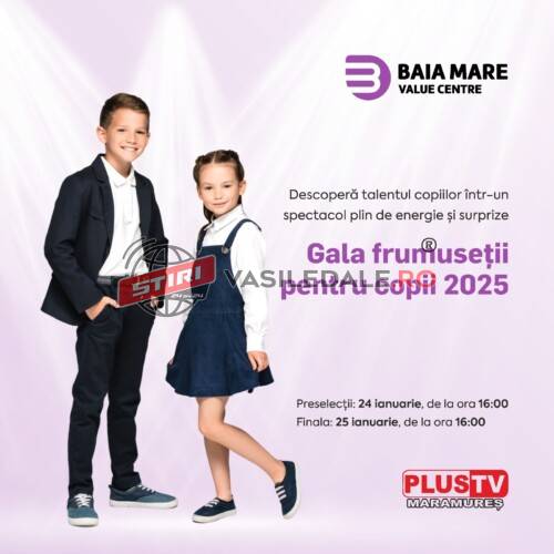 Gala Frumuseții pentru Copii este un eveniment care promovează tinerele talente și oferă o scenă unde copiii pot străluci. Televiziunea PLUS TV Maramureș și partenerii săi vă invită să fiți alături de noi la acest spectacol al eleganței și creativității. www.vasiledale.ro este partener media la acest eveniment.