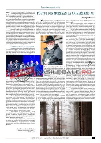 Actualitatea literară a acestei luni are în prim-plan evenimentele dedicate Zilei Culturii Naționale și aniversării poetului Ion Mureșan, la împlinirea a șaptezeci de ani, iar Gheorghe Pârja vine cu o evocare a tinereții lui Ion Mureșan.