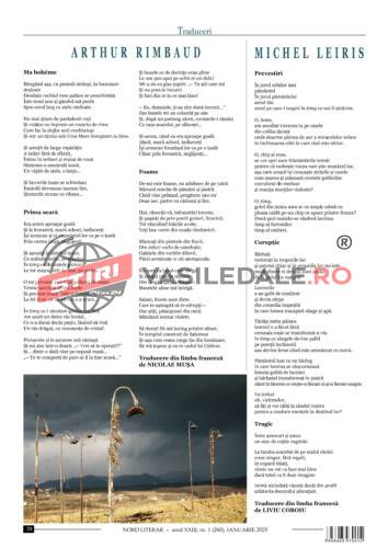 Pentru pagina dedicată autorilor străini, Liviu Coroiu și Nicolae Mușatraduc din Arthur Rimbaud și Michel Leiris.