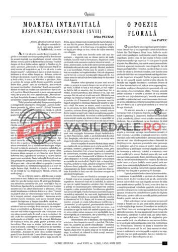 Pagina dedicată interpretărilor cuprinde două recenzii:„Prin poezie spre noi înșine” (autor: Valentin Emil Mușat), referitoare la volumul Elenei Liliana Popescu;alta semnată de Victor Rusu lacartea „Serpentine” a Marianei Stratulat. Despre volumele „Și totuși…” (autor: Cornel Cotuțiu) și „Tensiuni timide aproape erotice” (autor: Alexandru Jurcan)scriu Viorica Popa, respectiv Constantin Cubleșan.