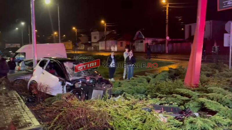 Două vehicule s-au ciocnit violent, iar mașina unei șoferițe de 17 ani a fost aruncată de pe șosea în apropierea parcării unui supermarket.