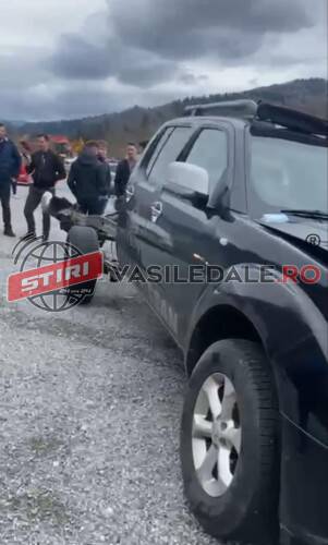 În urma acestuia autoturismul a ajuns în șanțul din dreapta direcției de mers, iar de pe mașina de teren a zburat efectiv o ladă pe partea carosabilă.