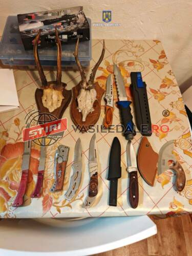 În cadrul perchezițiilor domiciliare efectuate astăzi, polițiștii au ridicat mai multe medii de stocare de natură a proba activitatea infracțională, trofee de căprior, și arme albe, susceptibile că ar fi fost folosite la comiterea faptelor.