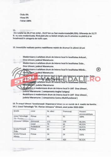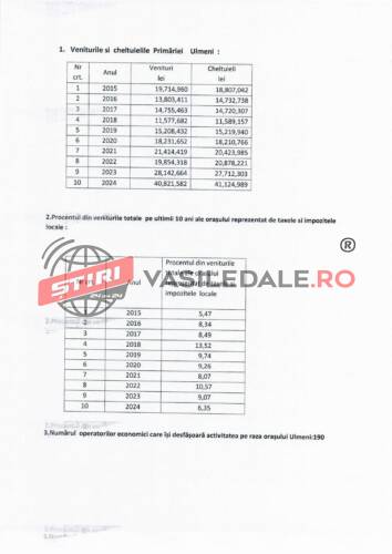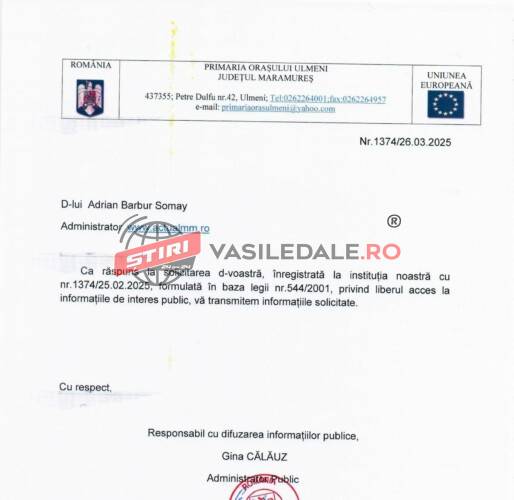 Sub semnătura actualei administrații, prin administratorul public Gina Călăuz, Primăria Ulmeni a transmis, în baza Legii 544/2001 privind liberul acces la informațiile de interes public, o serie de date oficiale care ar trebui să reflecte starea reală a orașului.