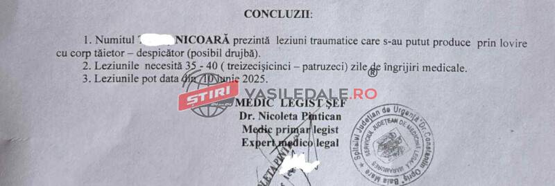 ”Am avut o discuție cu el pe tema că mi-a sustras două arcuri de pe Tatra pe care o avea depozitată în vecinătatea unde locuiește momentan acesta. Eram pe domeniu public, respectiva proprietate nefiind delimitată cu gard. A venit pe la spatele meu cu o drujbă pe care a pornit-o în timp ce se îndrepta spre mine cu intenția clară să mă omoare prin tăiere. În acel moment am ridicat mâna pentru a mă apăra și m-a rănit la mână tăindu-mi un tendon de la mâna dreapta. Mi-a tăiat și un deget de la aceeași mână. Mi-a distrus și telefonul mobil. El a susținut că i-am încălcat proprietatea, deși nu era delimitată cu gard. După ce m-a tăiat cu drujba mi-a spart luneta de la mașină și a tăiat cu lama aripa din spate stânga. Mi-a blocat ieșirea cu un Jeep, având intenția clară de a mă ucide. În acel moment am sunat la 112 a doua oară. Eram rănit și aveam hemoragie. La scurt timp a apărut un echipaj de poliție care după multe insistențe au reușit să îl convingă să deblocheze drumul. Menționez faptul că am o hotărâre judecătorească prin care s-a dispus obligarea lui de a păstra o distanță de 50 m față de mine. Precizez că ###Daniel este recidivist pentru că a fost implicat în dosarul Buldozerul, acesta intrând cu tatra în mașina trupelor de intervenție și a intrat și cu un Jeep până în mijlocul unui local. În drept, fapta săvârșită constituie infracțiunea de tentativă de omor calificat sau vătămare corporală față de persoana mea” sunt câteva pasage din plângerea penală pe care victima de pus-o vineri, 13 iunie 2025 la Poliția Orașului Borșa.