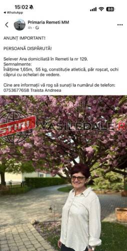 La data de 19 iunie a.c., în jurul orei 08.40, polițiștii Secției 6 Poliție Rurală Sarasău au fost sesizați prin apel 112 cu privire la faptul că o femeie din localitatea Remeți a plecat de la domiciliu în data de 17 iunie a.c. și nu a mai revenit.