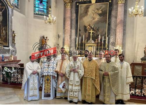 Sfânta Liturghie Arhierească, celebrată de Preasfinția Sa Cristian, a adunat în jurul altarului un sobor de preoți și slujitori ai Bisericii: pr. Yuriy Kolasa (vicar general al Ordinariatului Bisericilor Orientale Catolice din Austria), pr. dr. Larry Hogan (fost rector al Universității ITI), pr. Ovidiu Ioan Pintea (parohia Kagran), pr. Petru Felician Vlădu (Wiener Neustadt), precum și pr. Ioan Iulian Hotico, vicar al Misiunii vieneze. Li s-au alăturat diaconul dr. Gerhard Deimel și subdiaconul Alin Aron, într-un spirit de unitate și dăruire.